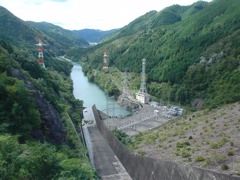「まだ着かんの」とタンデムシートで不満を言い出したので、とにかく温泉まで行こうと思ったが、いったん岩屋ダムで止まって休憩にした。