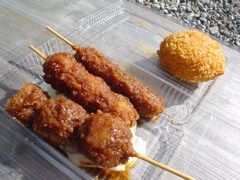 今回、ここにうまい味噌玉子揚げがあると某グルメ系ブログで聞いていたのでわざわざ大回りして来たのだが、どうだろうか。駐車場は結構満車なので止める所を捜すのに苦労したが、何とかあったのでそこに止め、目標ポイントの店を捜す。あ、すぐそこだった。ラッキーじゃん。丁度