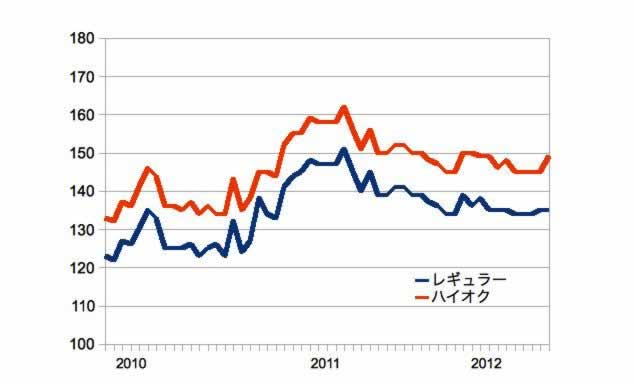 ガソリン価格の推移 2010年2月から2012年2月
