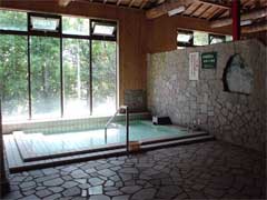 風呂場 とても広く開放的な風呂です。が、肝心の湯はぬるくて困る。源泉が出ているところからは熱いのですが、いかにも湧かしていますという感じで悲しい。 |