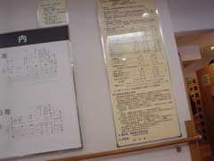 分析表 入ってすぐの下駄箱の横の壁に掲示してありました。となりに見えるのは館内案内図です。2階にレストラン、3階は宿泊施設になっています。 |