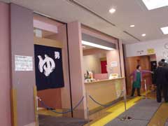 施設全景 とても立派な3階建ての温泉です。向い側で巨大なトンネル工事が行われているせいか、周辺は落ち着きがない感じです。駐車場も舗装なしで雪解け水でぐちゃぐちゃです。 |