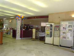 受付付近 ホテルフロントの向い側に温泉受付がありますが、開店が10時30分で、それまでフロントホールで待つ事になります。 |
