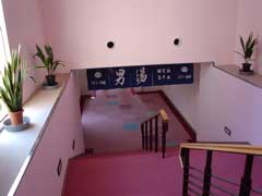 男湯方面 この温泉は階段を下って男湯、登って女湯です。いろいろな温泉に行きましたが、こんなに暖簾が横に長い温泉は他にないのではないでしょうか。 |