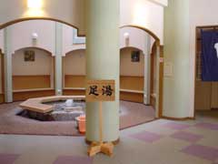 足湯 温泉に方に行くと、男湯女湯の間にこの足湯があります。入っている人はいませんでした。だって、隣に立派な温泉があるのに、足湯なんて、ねえ。 |