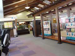 受付付近 賑やかしいホールです。ずらっと並ぶ自販機、マッサージ器、畳の広い休憩所があります。 |