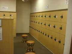 脱衣所 温泉の脱衣所というより、健康ランドか、ゴルフ場の風呂の脱衣所みたい。 |