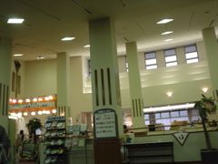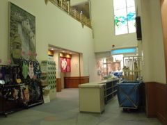 受付付近 宿泊施設もあるだけに、受付もホテルのフロントと同じです。下駄箱のキーを渡してロッカー指定のキーをもらうシステムです。その他に、タオルセットの引き換えカードももらいます。受付の周辺は、いろいろな売店やら何やら賑やかしいです。 |