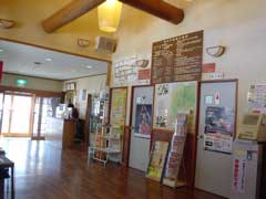 受付付近 奥の方から玄関を見たところです。玄関の横には受付があり、愛想の良い女の方がお見えになりました。写真の左の方に休憩所があります。 |